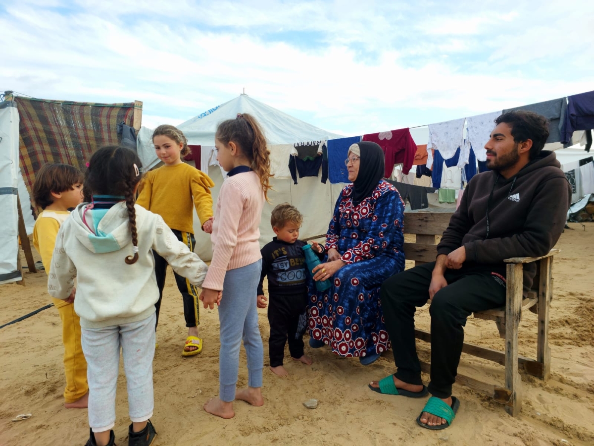 تبلغ أماني من العمر 72 عاماً عاشت خلالهم مصاعب عديدة كونها سيدة أرملة نزحت مع عائلتها المكونة من ثلاثة عشرة فرداً - ستة منهم أطفالاً- من شمال غزة الى المناطق الآمنة في مواصي خانيونس.